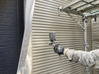 上塗り2回目吹き付け作業!!仕上げ!