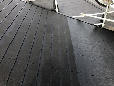 下から洗浄を行う理由は屋根材の裏の汚れなどが溜まっているので塗装の際に汚れが混ざった水がじわじわ垂れてくる!