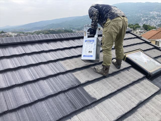 これがモ二エル瓦の塗装のタイミングを確認してから塗装を行わないといけないのがかなり難しいところです。2度確認して弊社は塗装の工程に移ります。