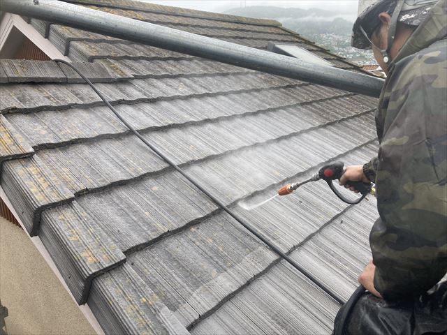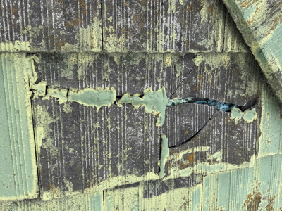 先程のスラリー層が付着しているので塗装の際はこれをしっかり洗浄しないといけません!特に高圧洗浄でやりますがカラーベストや瓦屋根で塗装を行う!ように洗浄してはいけません!