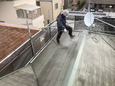 屋根の場合は洗浄は下から上にかけて洗浄を3回以上行う必要があります。