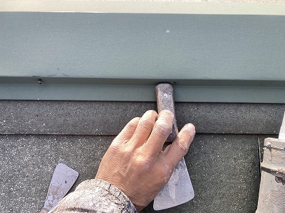 塗装を行うのでコーキングは変成コーキングを使い屋根材などしっかりとコーキングを行っていきます。