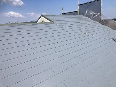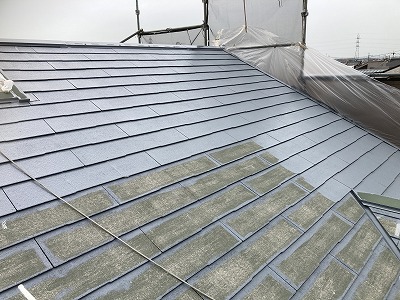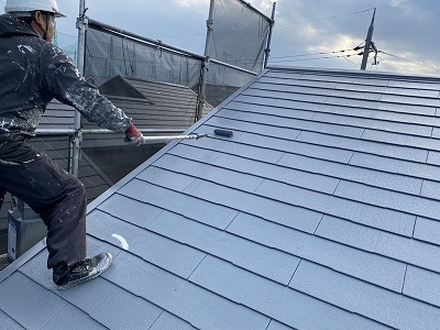 上塗り2回目 ローラー塗装 遮熱効果発揮!屋根塗装完了!