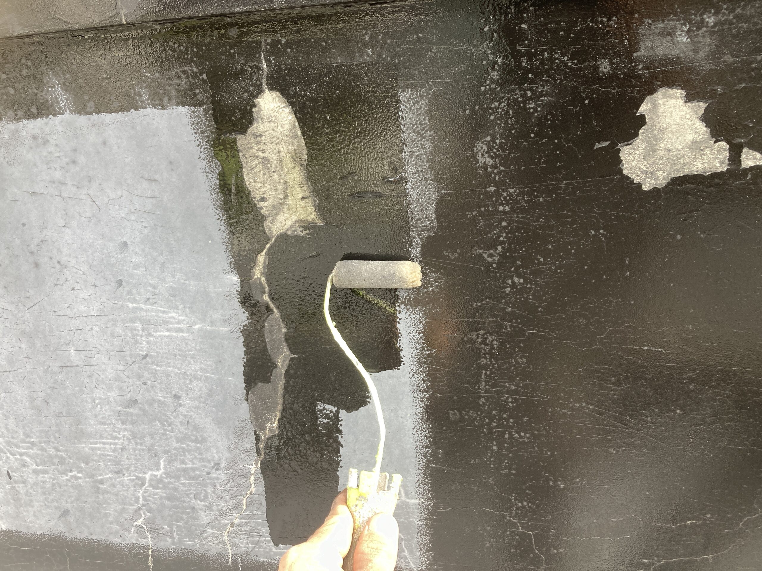 浸透性シーラーの際はローラーで硬化させれいきます!ローラー施工にすると、ゆっくり・確実に下地へ押し込むことができます。