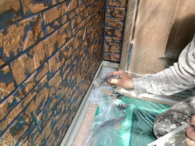 水切り塗装の塗装の様子! 弊社は密着性があるので剥がれません!