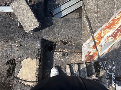 陸屋根もこれは部分的アスファルト防水を行っていた形跡がありましたが、劣化しすぎて分かりませんでした(笑)
