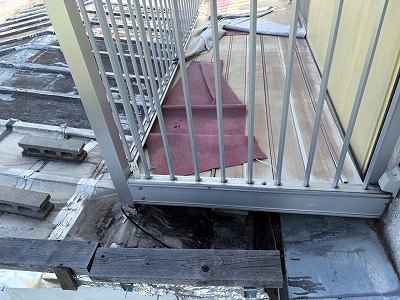 防水は部分的行っても意味がありません!まずはこのシート?よくわかりませんが、まずはこれらを撤去して洗浄しないと意味がありません!