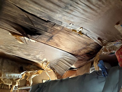 2階の天井に関しては完全に天井材がめくれ切ってるじ状態です。