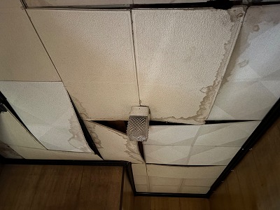 このようにここまで天井が雨漏りしている状態ではもう工事は限られています。
