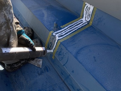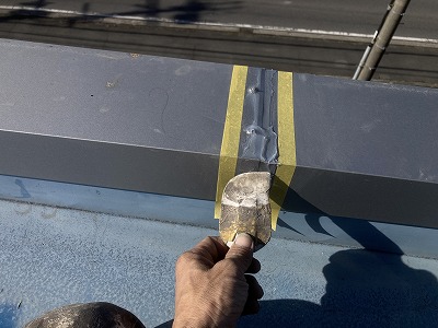 棟板金ジョイントコーキング!隙間部分のコーキング必須!