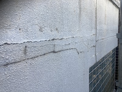 築60年の住宅の外壁の状態はかなり悪く、外壁ひび割れやひび割れ箇所から、雨水侵入などかなり劣化している状態でした。