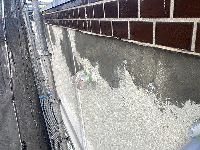 モルタルの壁を全体に塗布していきます!透明なので全体に塗布したかわかりませんよね(笑)よく見てもらうと若干濡れているような感じですね!