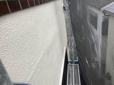 外壁の塗装ができる面が4面のうち2面しかなく!残り2面はタイル壁になっています!タイル壁は塗装出来ないので、今回は2面の外壁塗装工事をご紹介!