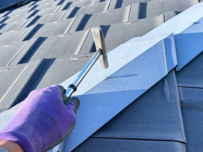 強風の影響で瓦が外れの原因にも繋がりますが、板金の影響で瓦が外れる原因にも繋がります。