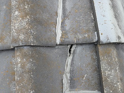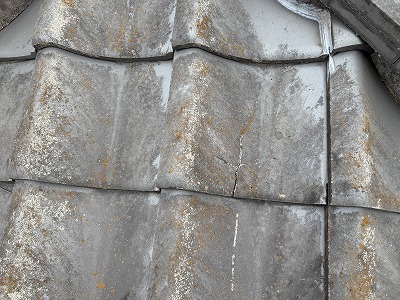 周囲の瓦も全体に的に悪い状態で部分的に補修を行って次は他の箇所が割れる可能性もございます。