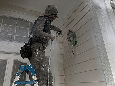専用のスプレーガンを使うことで、外壁の細かい凹凸やサイディングの目地部分まで均一に塗料を行き渡らせることができます。