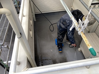 ベランダ高圧洗浄 ベランダの塗料の密着性を上げる作業!これは必須!