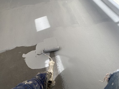 床部分だけではありません!しっかり立ち上がり部分もローラーで丁寧に塗装を行っていきます。