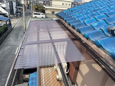 今回は築40年以上の桜井市のお住いのお客様からのお問い合わせで「波板がかなり放置していて強風で飛んで行く可能性が高いので、早急に交換してもらいたい」
