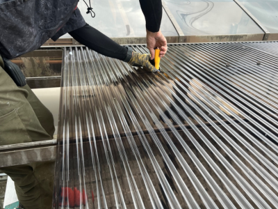 そこで今回は、耐久性が格段に高い ポリカーボネート波板への全面交換 をご提案。強度・耐候性・防音性に優れており、長期間安心してお使いいただける仕様です。
