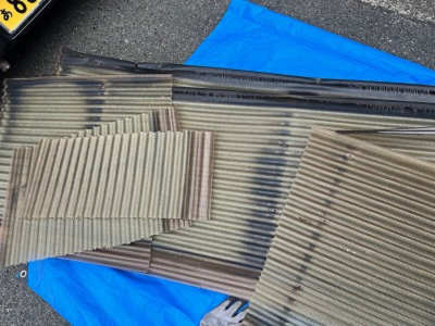 古い波板は紫外線劣化で硬くなり、割れやすい状態になっています。