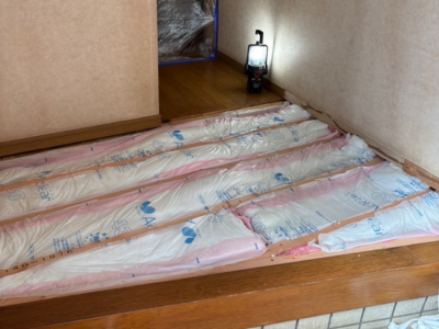 断熱材がない部分は、冬場の底冷えや結露の原因にもなるため、補填・補修をあわせて行うことをおすすめいたします