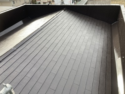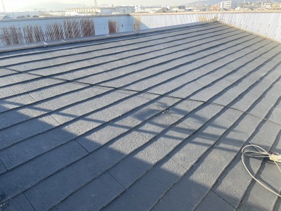特にスレート屋根は塗膜厚が重要です。規定塗布量を守り、均一に仕上げることで