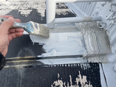 この塗料を棟板金に全体に塗布していきます!これはかなりおすすめな塗料になります!