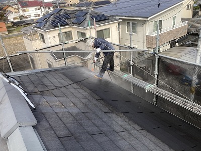屋根塗装 まずは高圧線洗浄 これで今後の屋根の耐久性が決まる!