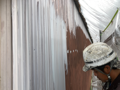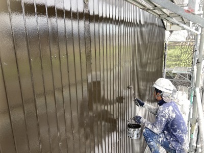2回塗りで鉄板壁は塗装は完了になります!