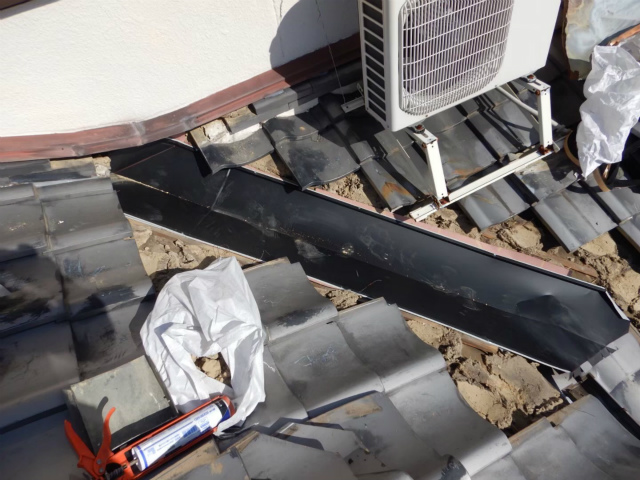 コーキング作業が完了致しましたら、周囲の瓦を戻して谷板金の交換工事は完了になります。