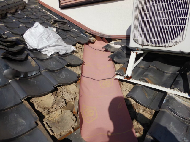 新しい谷板金を施工する前に防水紙(ルーフィング)を敷設します。