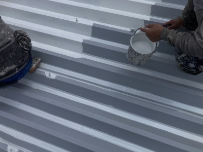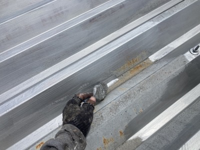 ファインプライマー2で金属屋根の下地を強く保護したあと、